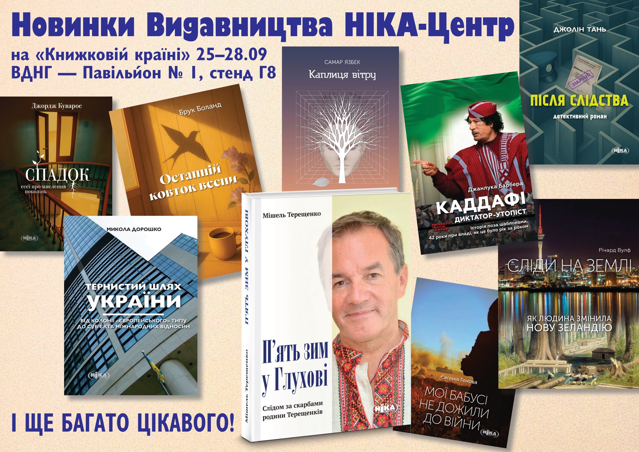 25-28 вересня цього року на ВДНГ відбудеться Фестиваль «Книжкова країна». Робота книжкового ярмарку: • 25–26 вересня (четвер–п’ятниця) — з 12:00 до 20:00 • 27–28 вересня (субота–неділя) — з 10:00 до 20:00 Видавництво НІКА-Центр бере участь. Наш стенд у 1-му павільйоні №Г8. До цієї чудової події маємо такі новинки: – Мішель Терещенко П’ЯТЬ ЗИМ У ГЛУХОВІ. […]
